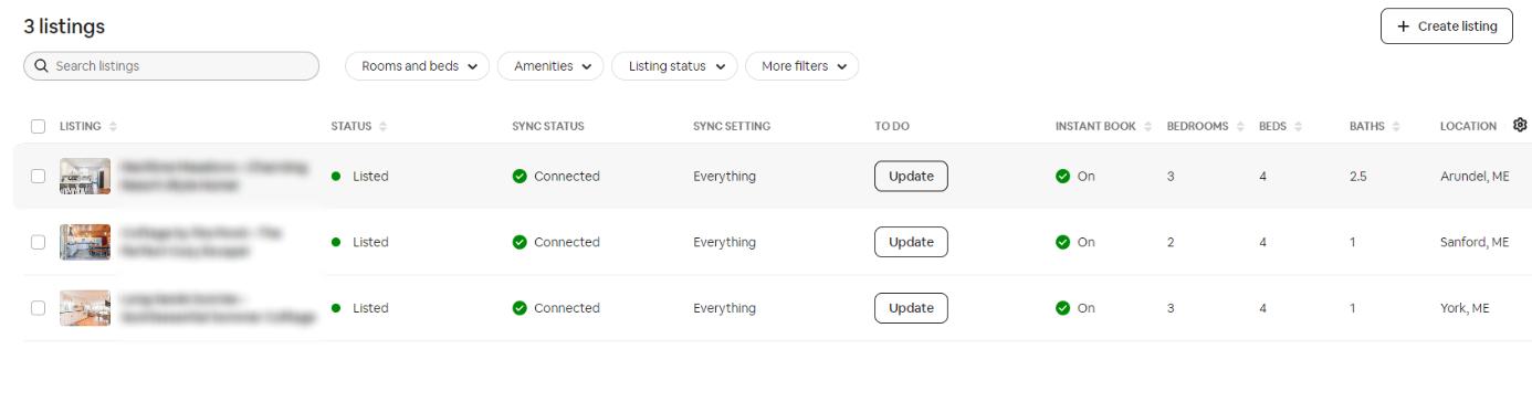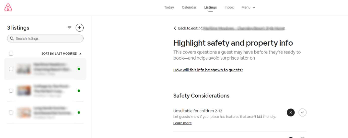 After logging in with the main account login and selecting "switch to hosting", then select "Listings" from the menu